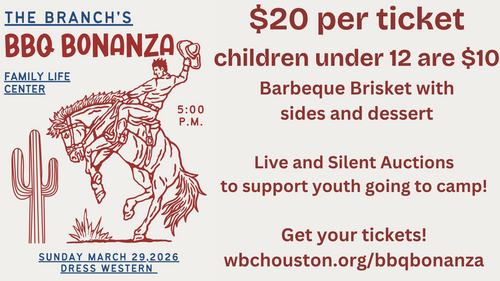 Come support The Branch student ministry for an evening to remember. Our students invite you to participate in a dinner and game night. We will serve BBQ. Not to mention, we will also have an auction of several one of a kind items. This event is a fundraiser to help offset the cost of youth summer camp this summer. We are looking forward to seeing you on March 29, at 5:00 PM!
