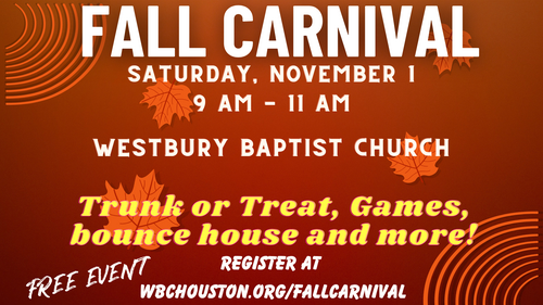 Join us for a fun, family-friendly evening in the Family Life Center and north parking lot. There will be FREE activities like: Bounce House, Corn Hole, Trunk or Treat, Pumpkin Patch photos, and more. Candy is given to children at each activity.