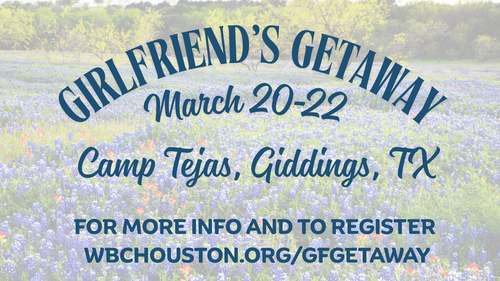 Join us for a ladies' retreat to Camp Tejas in Giddings, TX on March 20 and 21 with an option to stay over until March 22. This is a refreshing weekend at beautiful Camp Tejas. Enjoy Bible study, fellowship with other ladies, fun, laughter, rest, and time away from the city. Deadline for registration is March 15. (No refunds after March 8)